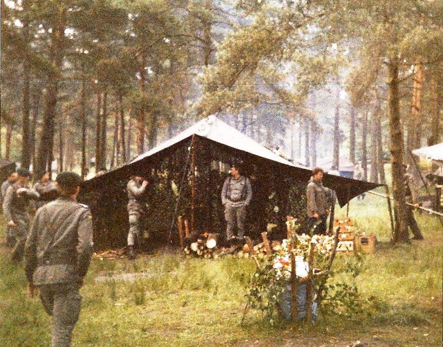 Kompanie"gefechts"zelt mit getarnten Papierkorb ;-) - Dackelhotel, der Schlafplatz für 2 Wochen - Abstellplatz für Fahrzeuge der Kompanie