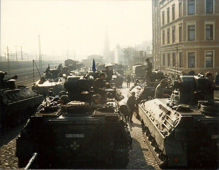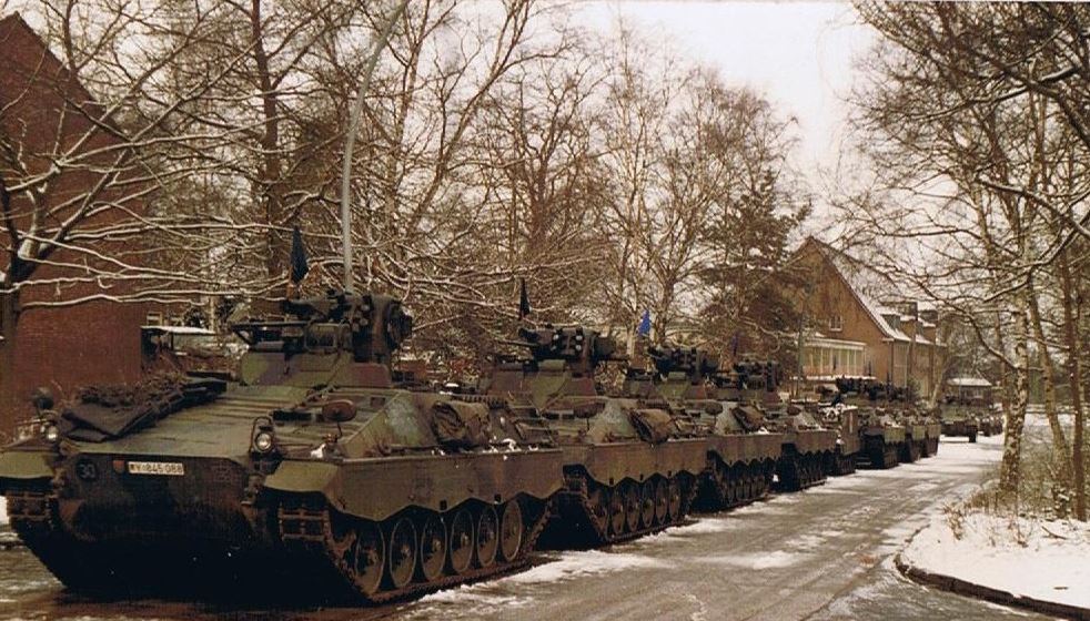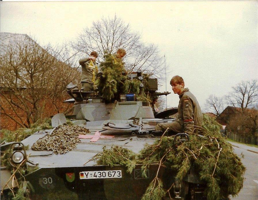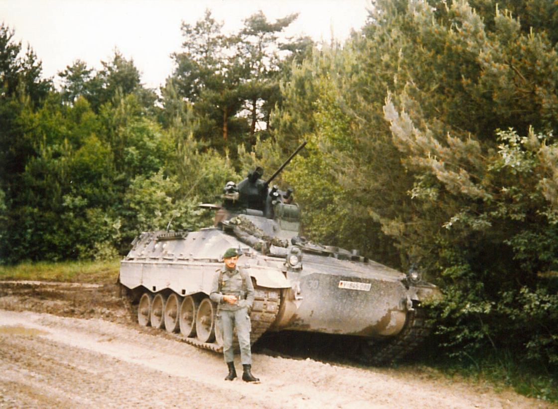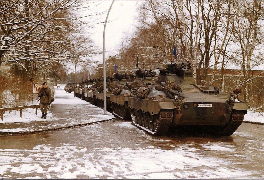 April 1988 - Marder marschbereit vor der Kompanie HFw Lauterbach und Fahrer 1988 in Bergen